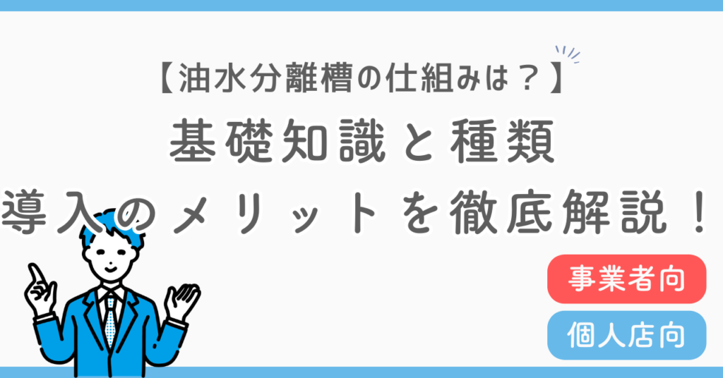 油の処理にお困りの方は必見!この記事では、油水分離槽の仕組みや導入のメリット、メンテナンス方法について解説しています。実は油水分離槽は、飲食店や工場の排水から油分を除去する設備です。記事を読めば、施設に適した油水分離槽を準備できます。 -