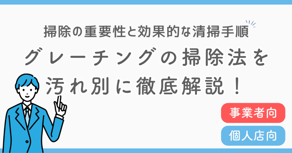グレーチングの掃除でお悩みの方は必見!この記事ではグレーチング掃除の重要性や手順、汚れ別の対処法などを解説しています。実はグレーチング掃除は正しい道具を使い定期的に行うことが基本です。この記事を読めば適切な方法で効率よく掃除できるようになります。 -