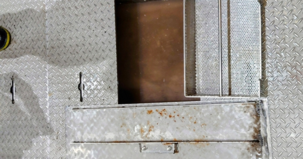 準備ができたら換気を十分に行い、周りの安全を確認してグリストラップの蓋を慎重に開けます。蓋が重い場合は無理をせずに、複数人で作業してください。蓋を開けたら周りの汚れを拭き取り、安全な場所に置きます。内部の状態を確認し、必要に応じて写真を撮影しておけば、清掃の頻度を考えるときに役立ちます。