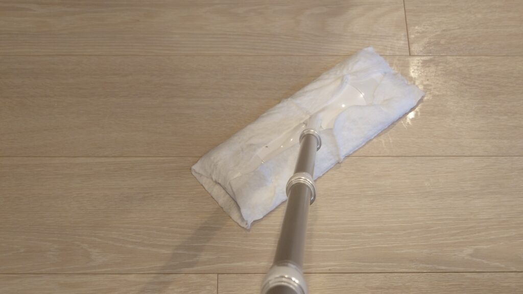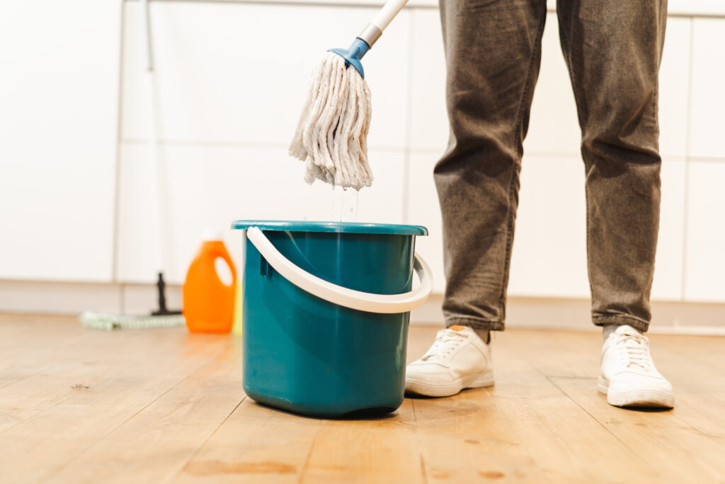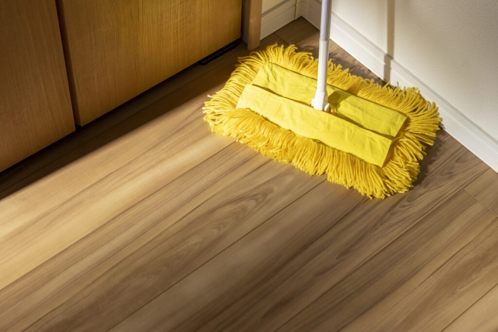 つけ置き後は、ブラシやモップで汚れをこすり洗いします。汚れと洗剤を十分な水で洗い流してください。汚れが取り切れない場合は、複数回繰り返すと効果的です。使用する洗剤は、必ず床材に適したものを選びましょう。酸性やアルカリ性が強い洗剤は床材を傷めるため避けてください。