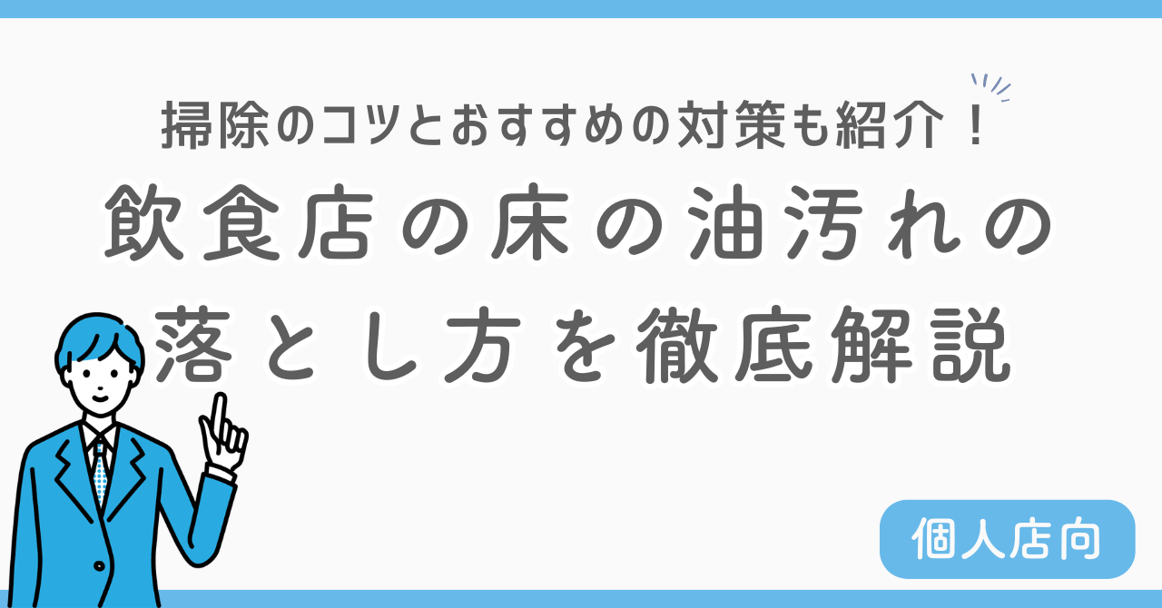 飲食店の床の油汚れ対策は、衛生面と安全面で欠かせません。飲食店の床の油汚れの落とし方は、以下のとおりです。