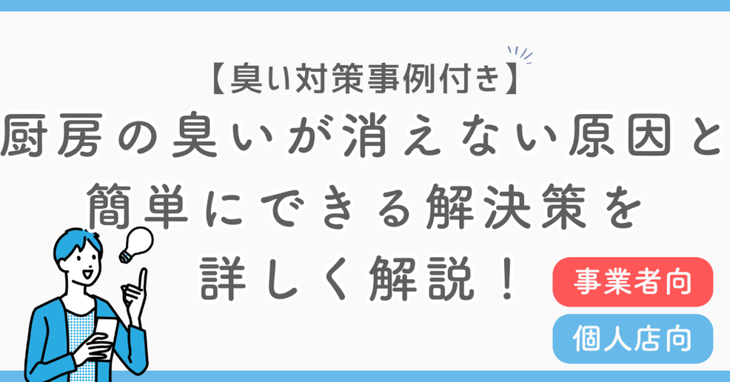 厨房の臭い対策でお悩みの方は必見!この記事では厨房の臭いが発生する原因や具体的な対策、法規制について解説しています。実は臭い対策は顧客や従業員の満足度を高めます。この記事を読めば効果的な臭い対策がわかり快適な飲食店環境を作り出すことが可能です。 -