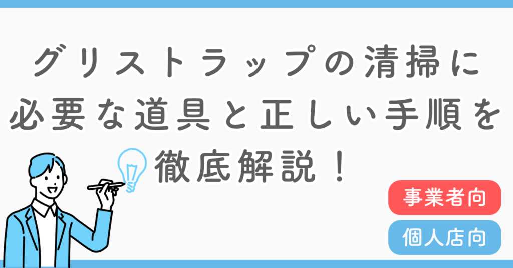 グリストラップの正しい管理方法がわからない方は必見!この記事では、グリストラップの清掃に必要な道具や手順を解説しています。実は、グリストラップの清掃に必要な道具は想定以上に多いです。この記事を読めば、効果的なグリストラップの清掃方法がわかります。 -