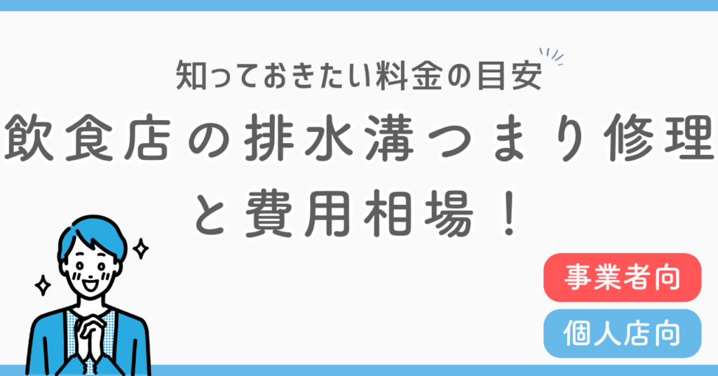飲食店経営者は必見!この記事では排水溝つまりを業者に依頼する際の費用や原因、解消法、予防策を解説します。実は排水溝がつまると悪臭や害虫が発生し、業務停止につながる可能性があります。この記事を読めば排水溝の修理費用の相場がわかり、店舗の衛生状態を効率的に維持する方法がわかります。 -